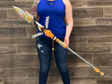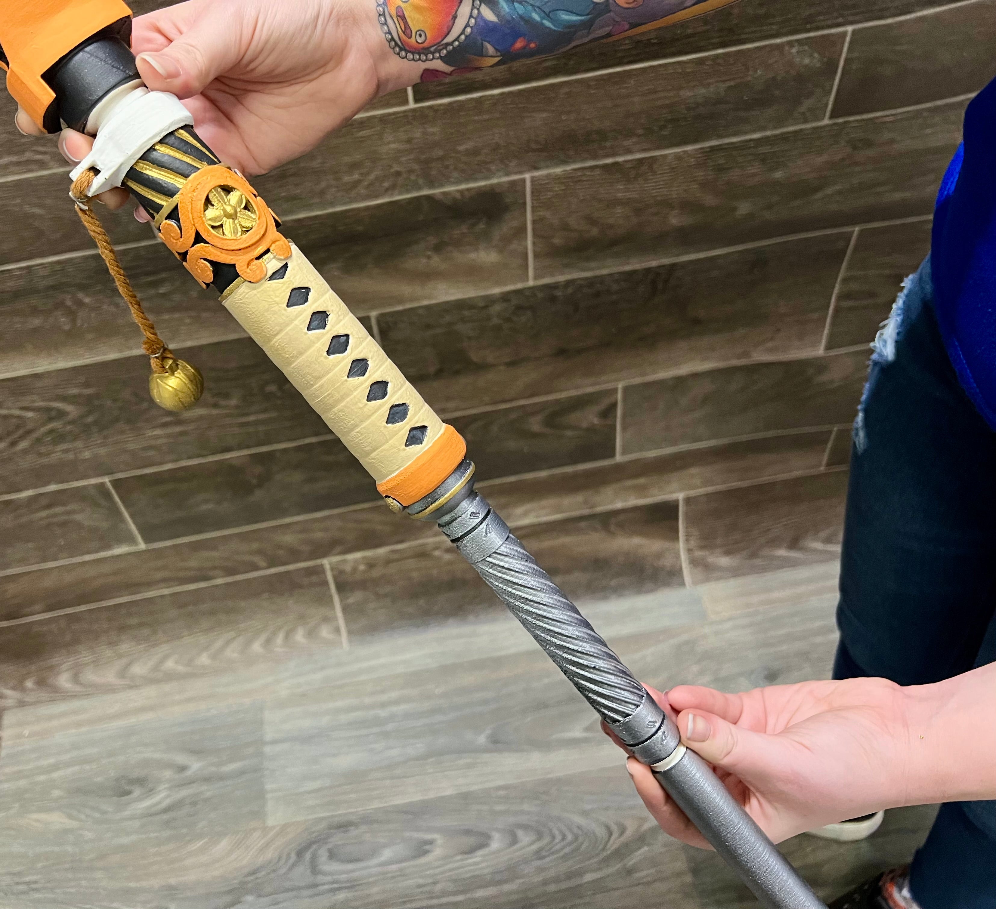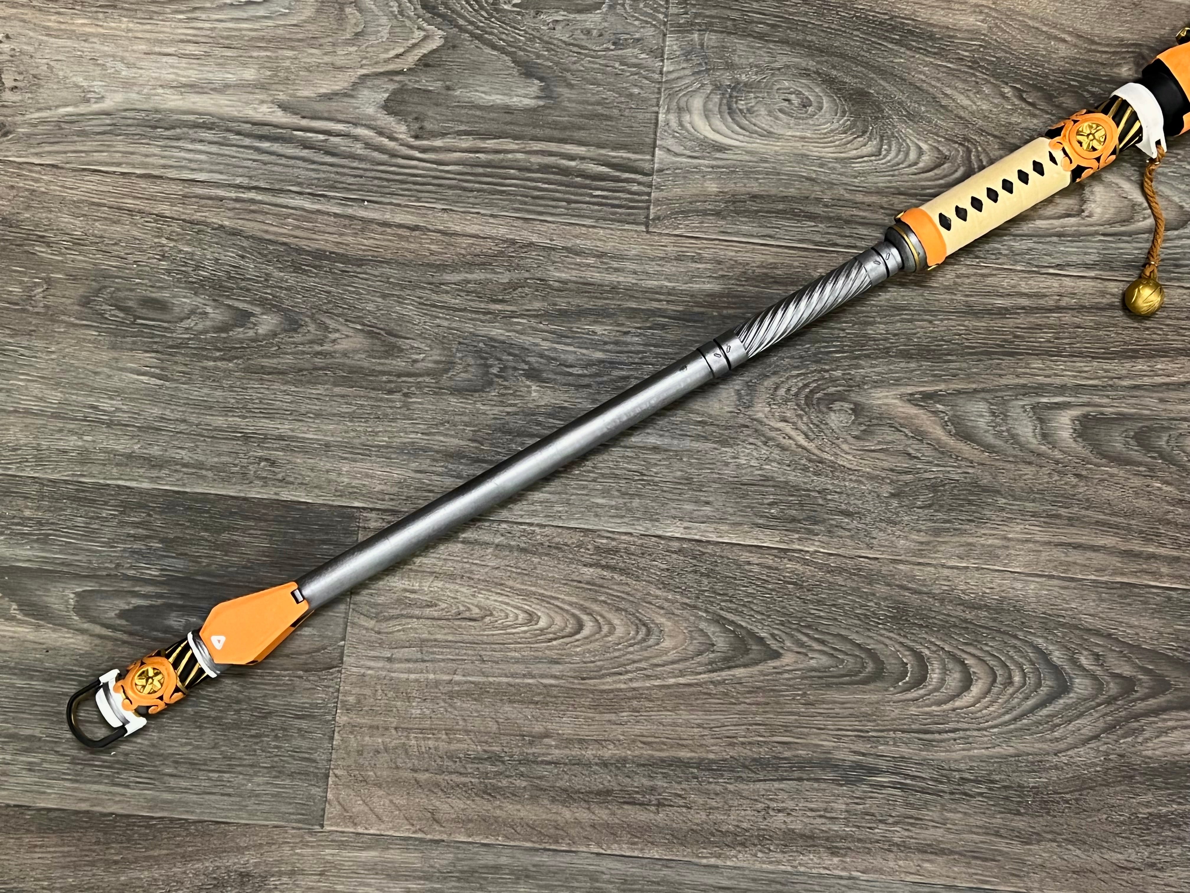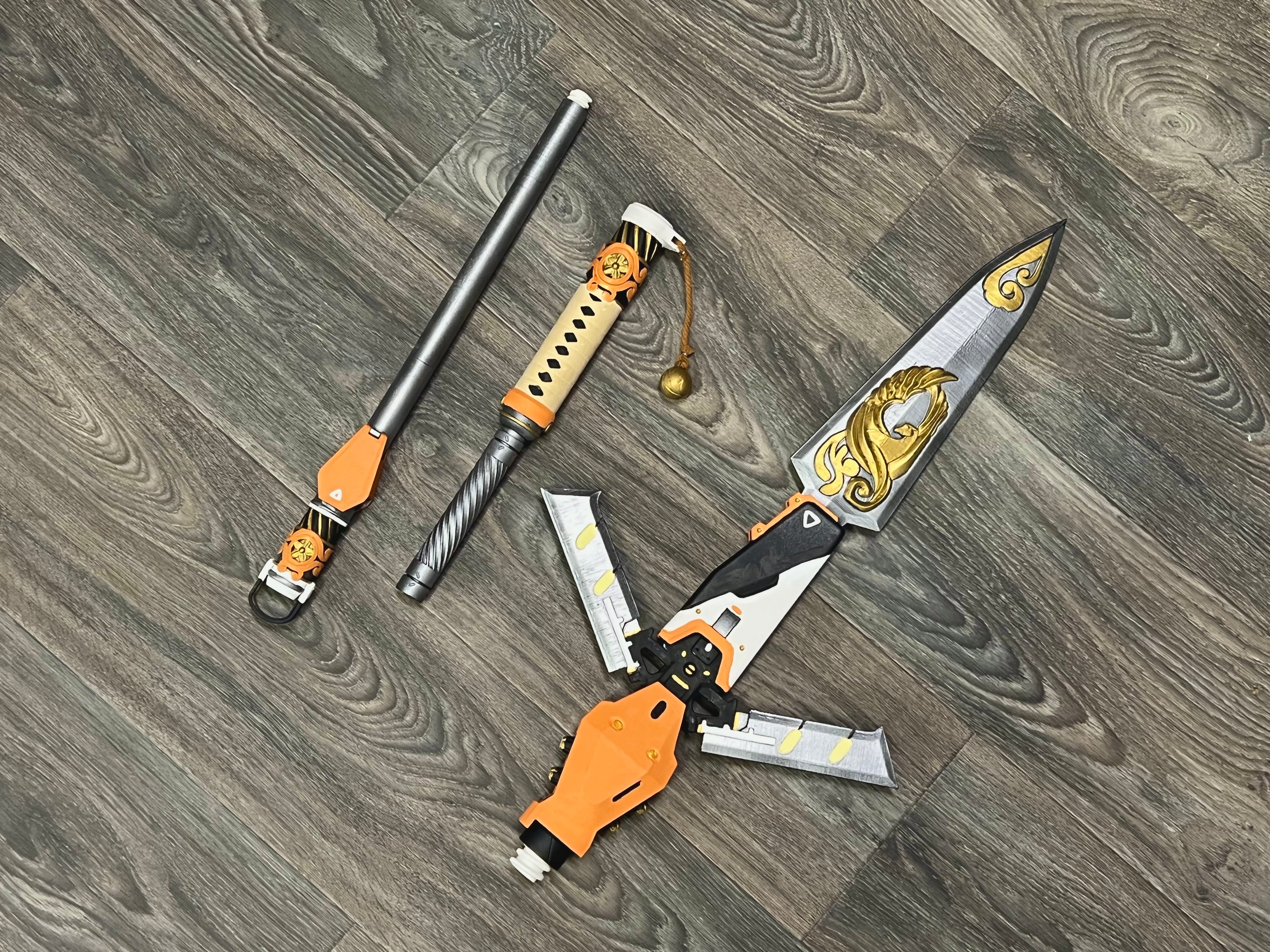 This is an entirely hand-painted, full-scale 3d printed prop inspired by one of the coolest character accessories in the hit game. When fully assembled, this stands at an overall length of 56 inches and comes apart into 3 similarly lengthed parts. Its super lightweight as well so it's easy to carry around while looking absolutely awesome. This is the perfect gift for anyone who loves the game and the character!