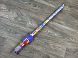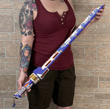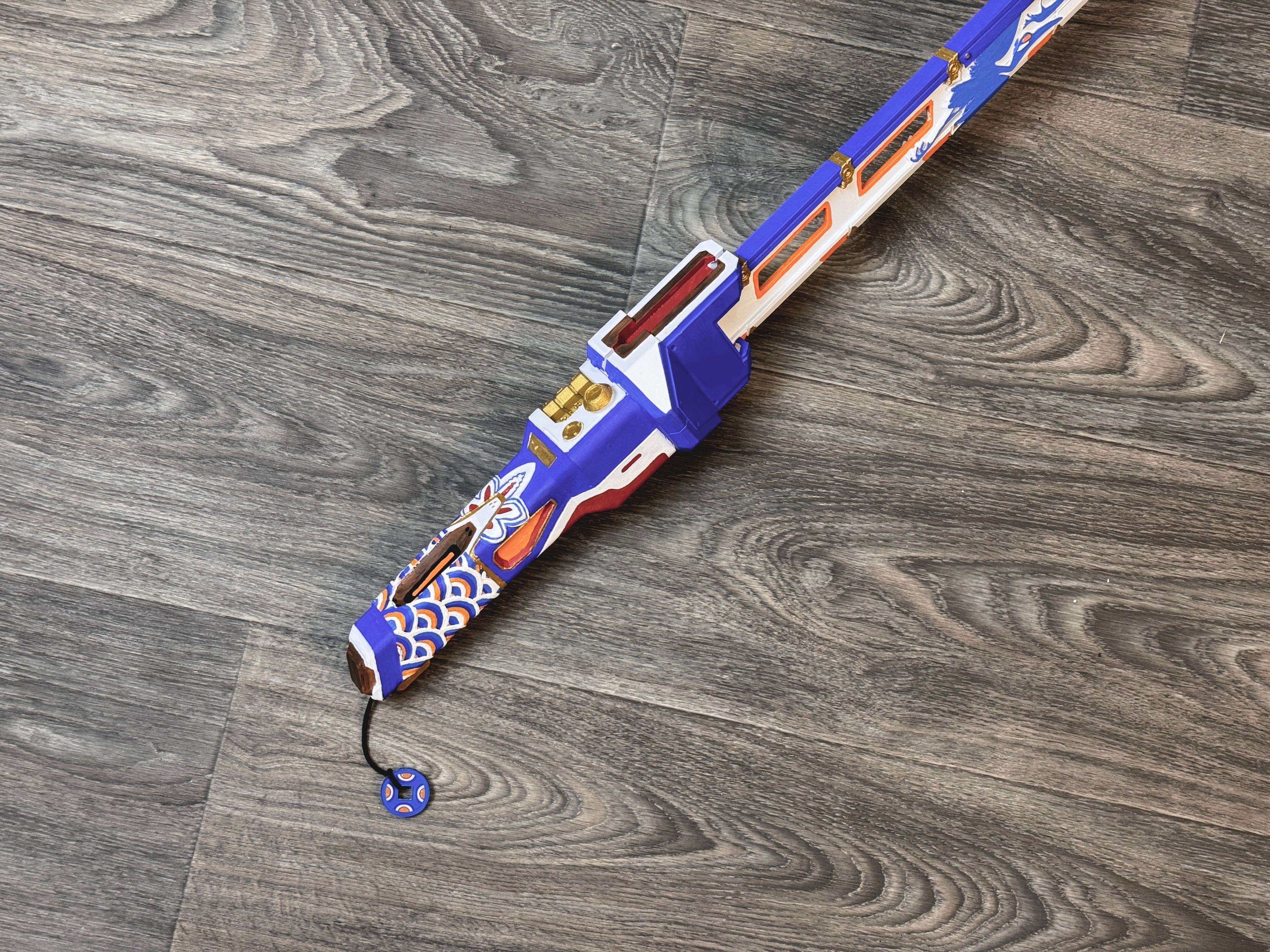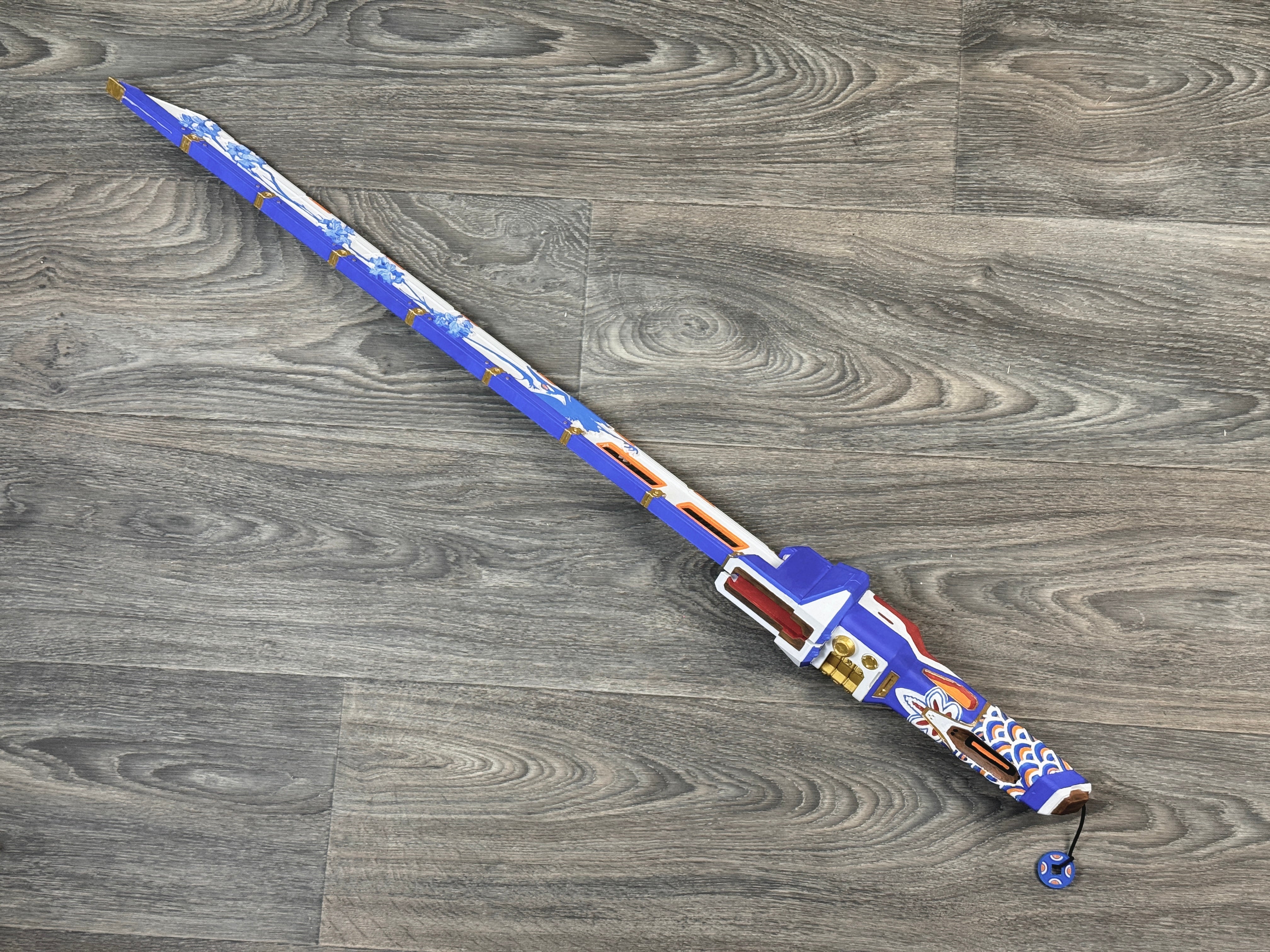 This is an entirely hand-painted, full-scale 3d printed prop inspired by one of the coolest character accessories in the hit game. The overall length of the item is 38 inches long (27in long blade and 12.5in long handle with some overlap of the parts). The blade and the handle come as two separate pieces that connect together with a friction fit design for easy portability. Its super lightweight so it's easy to carry around while looking absolutely awesome. This is the perfect gift for anyone who loves the game!