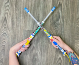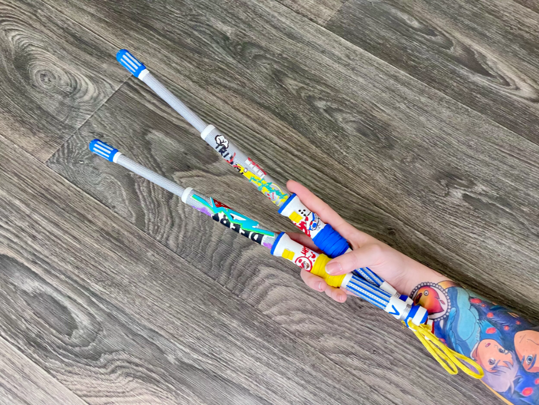 A metal rod is used as the core for these to ensure extra strength and durability as well as to add weight which really adds to them feeling more lifelike. These are entirely hand-painted, full-scale 3d printed prop inspired by lifeline’s heirloom representing the colorful and electrifying Shock sticks in Apex Legends. They are life size at 17 inches long and are great for display and cosplays. This is also a perfect gift for anyone who loves the game and enjoys the character!