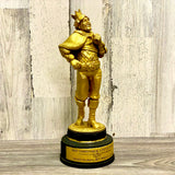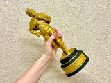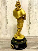 This is an entirely hand-painted, full-scale 3d printed prop inspired by the Mirage's Golden Heirloom representing the Holographic Trickster himself in the hit battle royale game. The statue is life size at 13 inches tall.