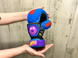 This is a pair entirely hand-painted, full-scale 3d printed prop inspired by the Pathfinders Heirloom Boxing Gloves in the hit battle royale game. The pair of gloves are life size at a little over 9 inches tall each.