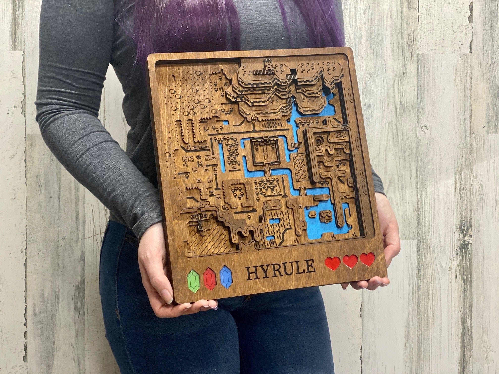 3D Hyrule Video Game Map Laser Cut Wood MultiLayer Custom Decor Nintendo Link Between Worlds Link to the Past Fan Art