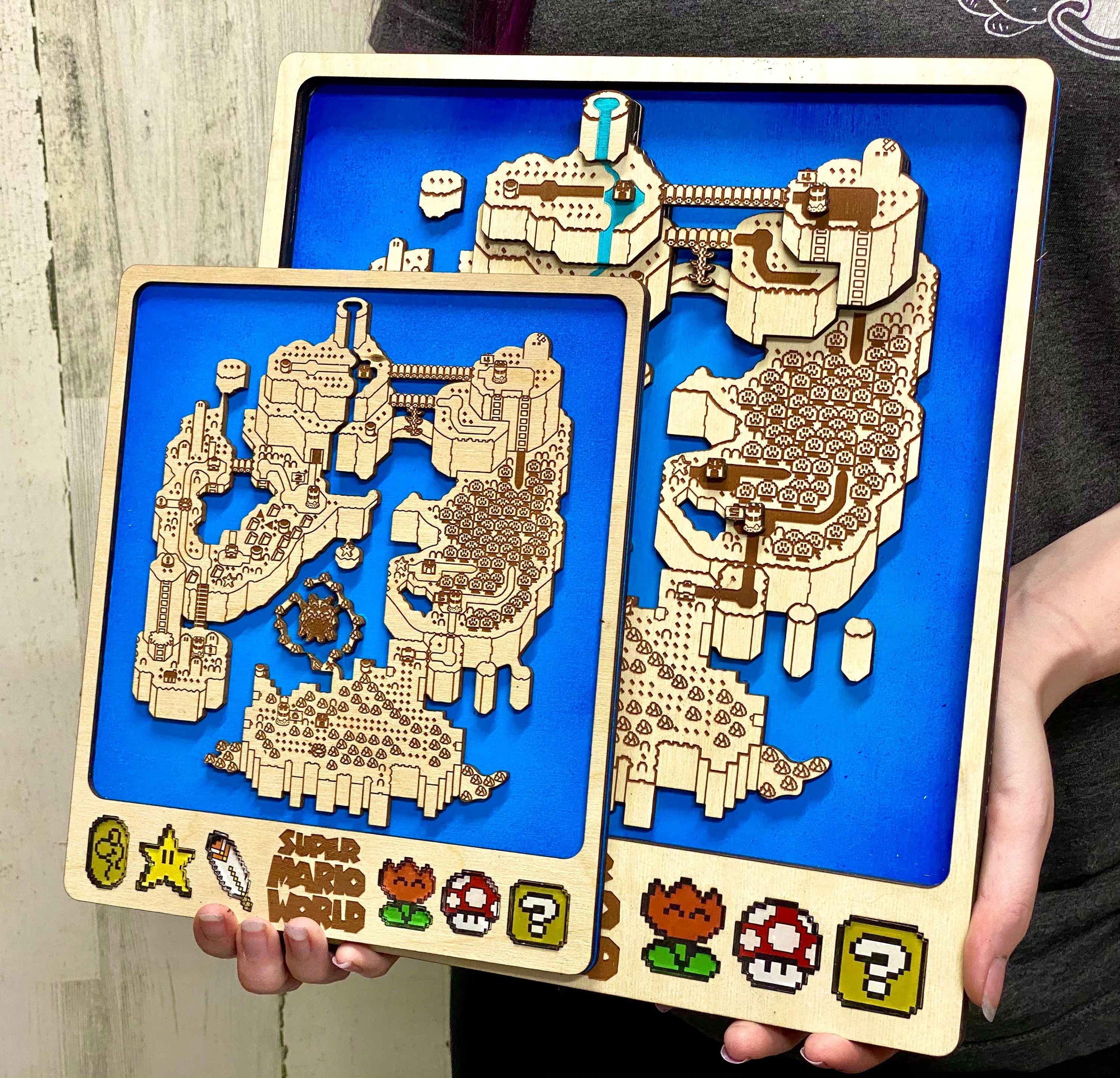 3D Super Mario World Video Game Map Laser Cut Wood MultiLayer Custom Decor Nintendo Fan Art