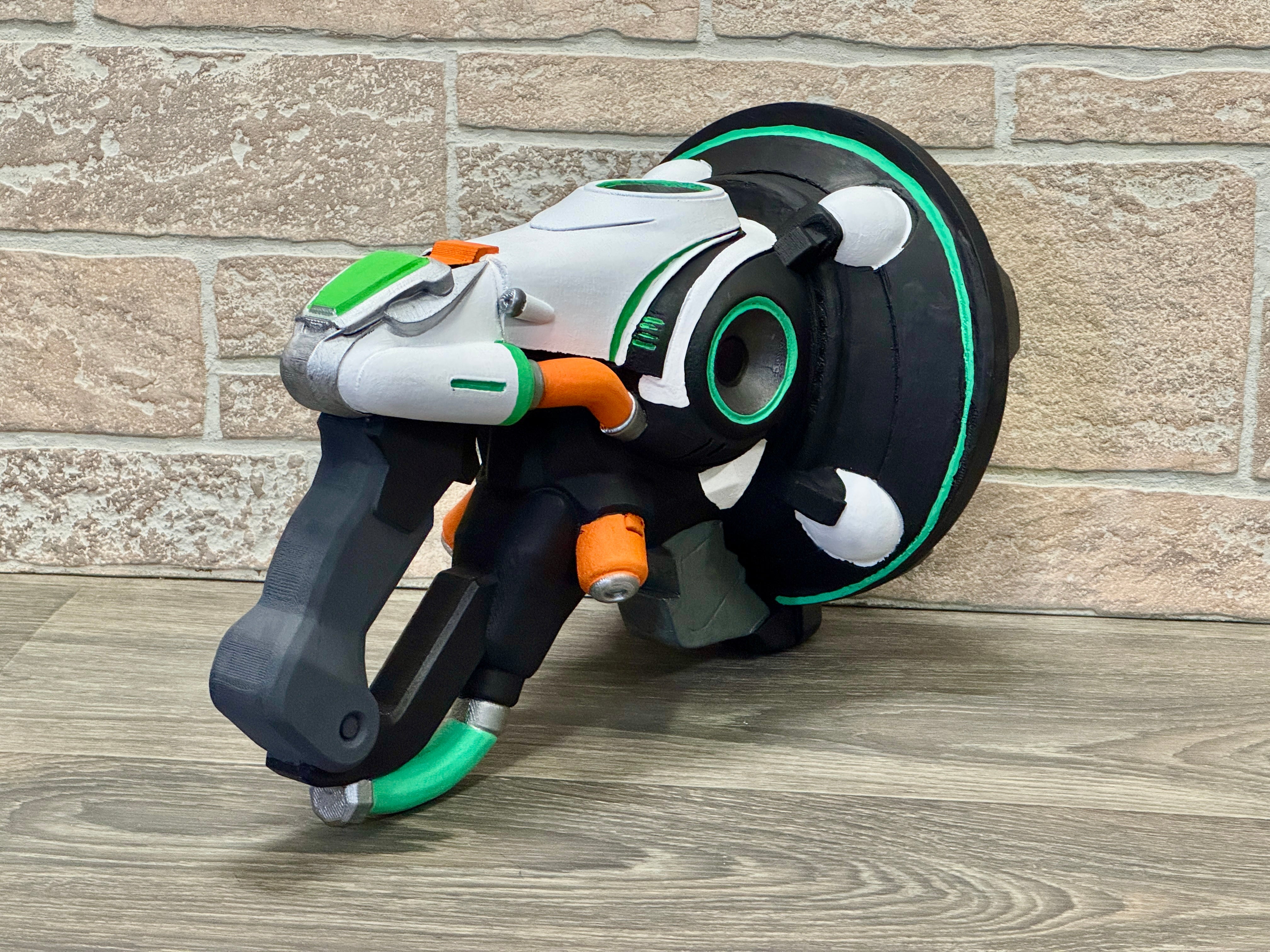 Crank up the volume on your cosplay arsenal with this full-scale 3D replica of Lucio’s Sonic Amplifier, styled in his fan-favorite Ribbit skin from Overwatch. This prop is carefully 3D printed in lightweight yet durable ABS plastic, capturing the character’s iconic green-and-white color scheme with vivid paintwork and detail.