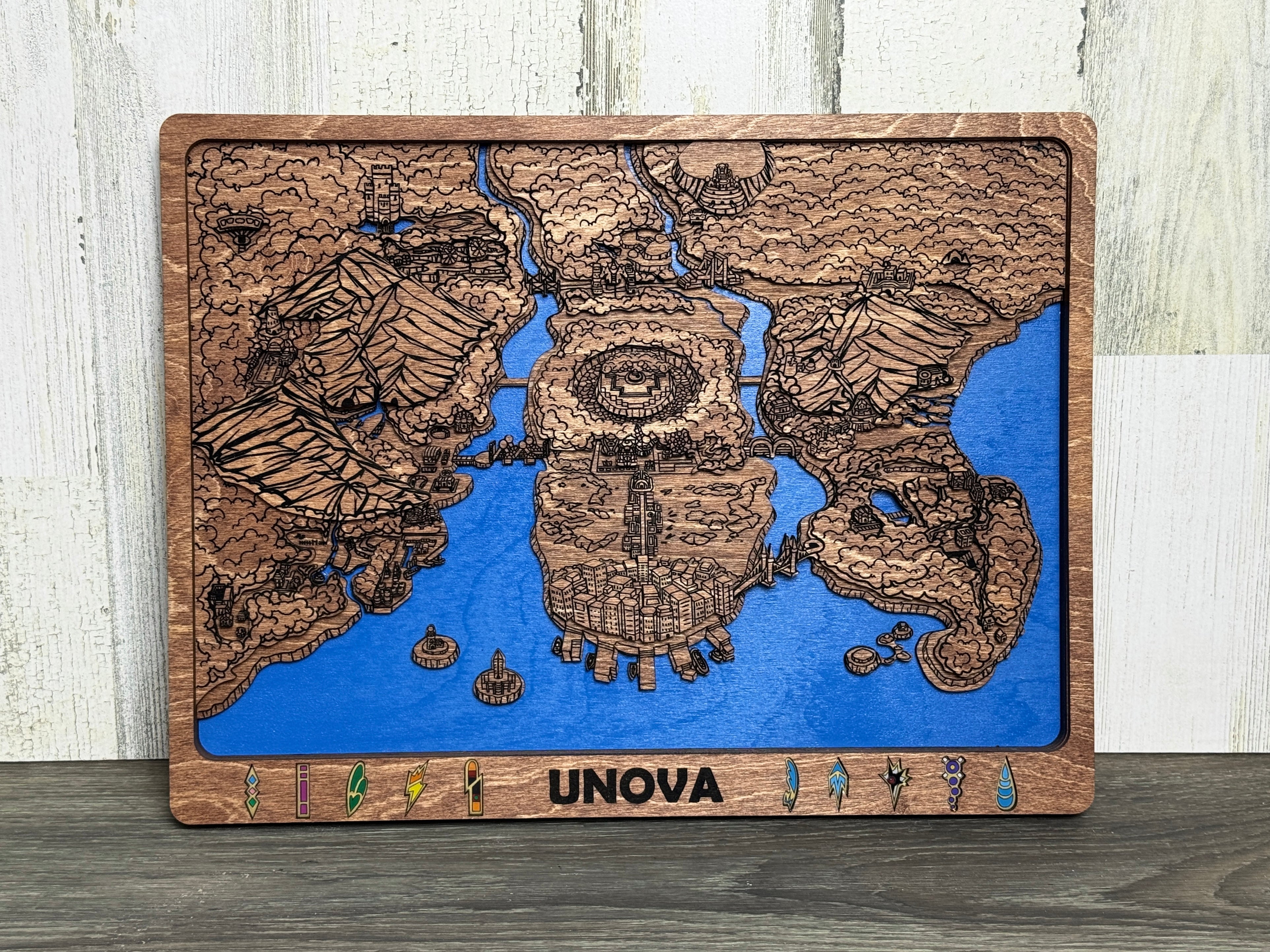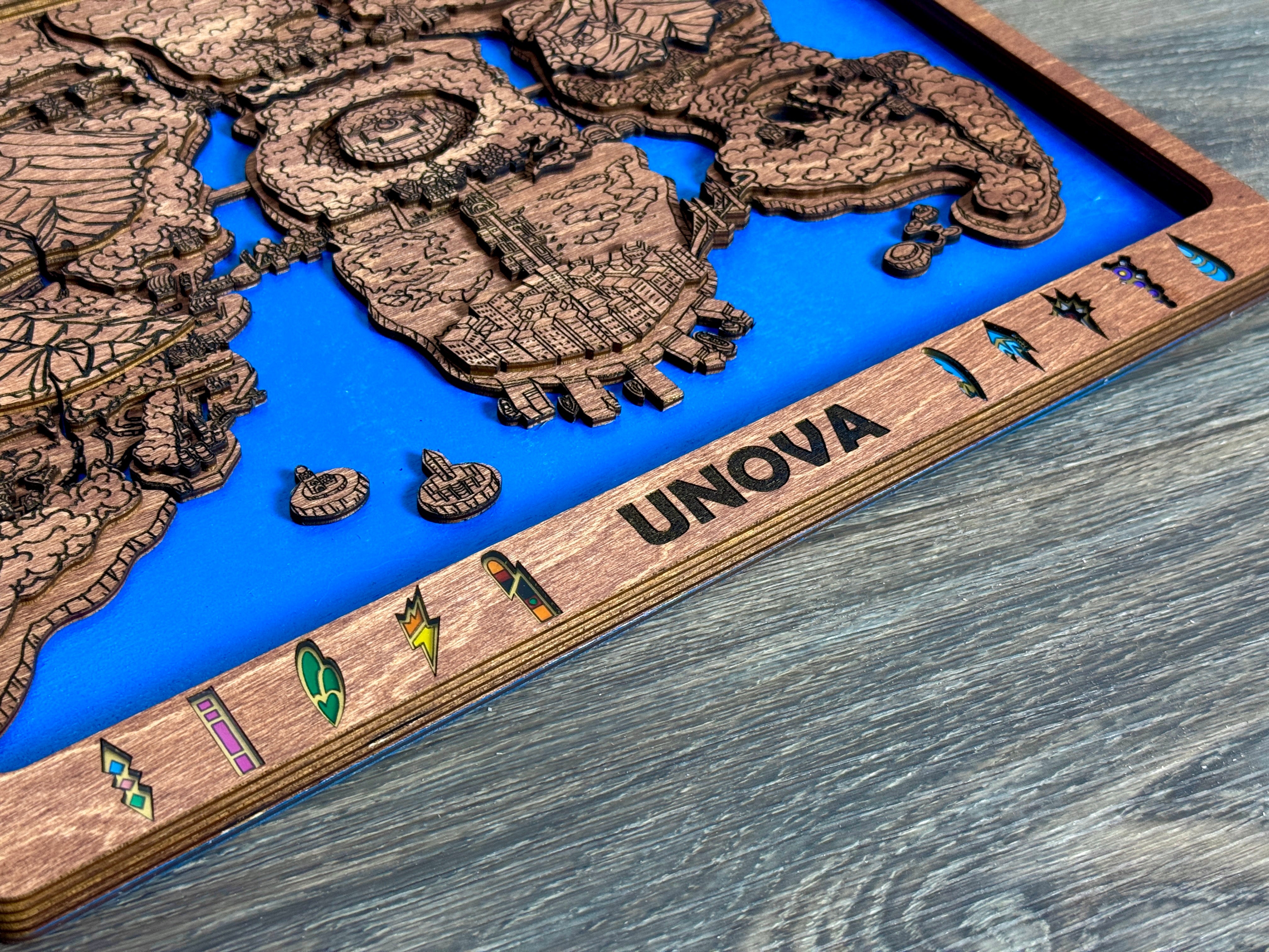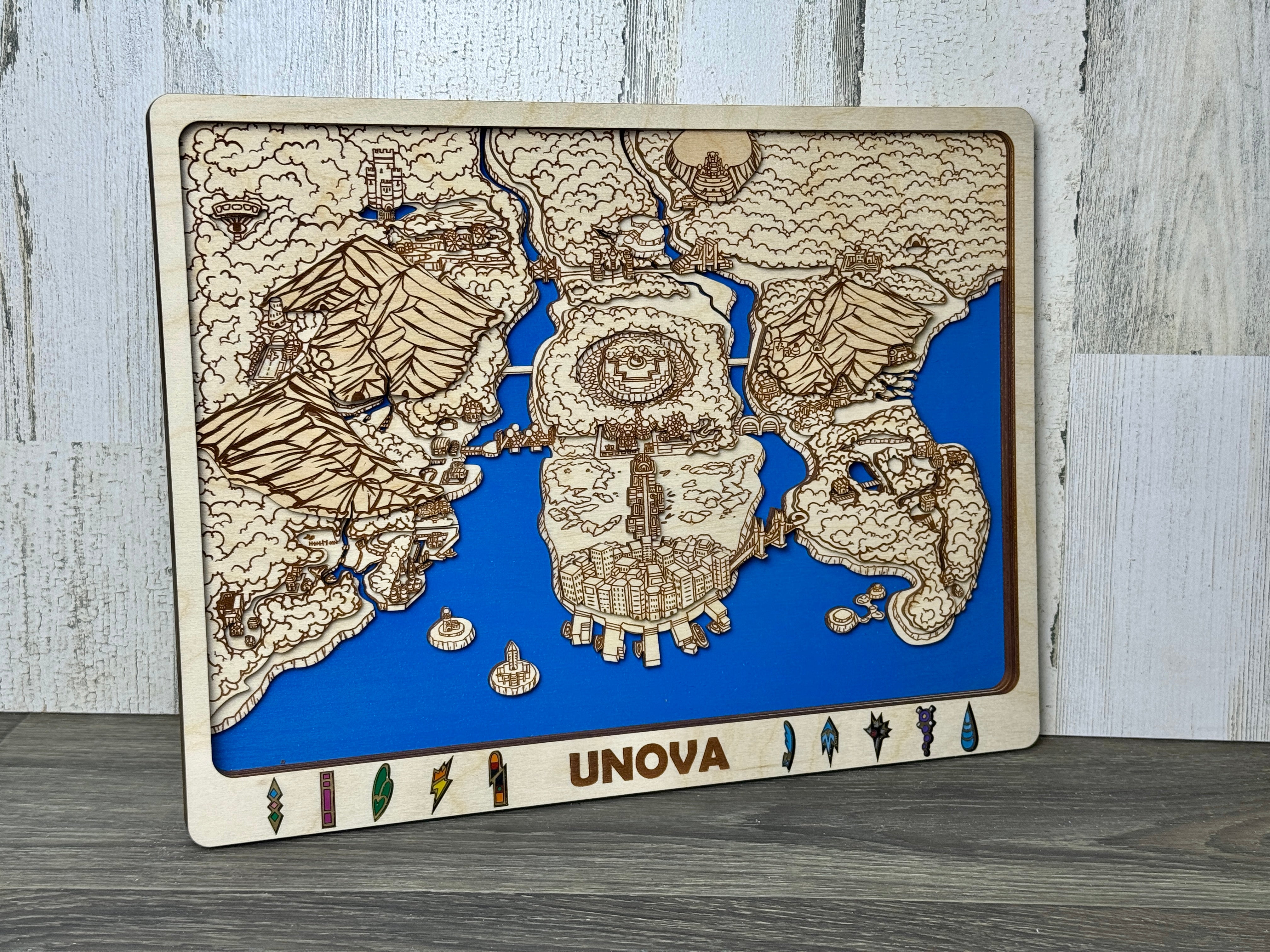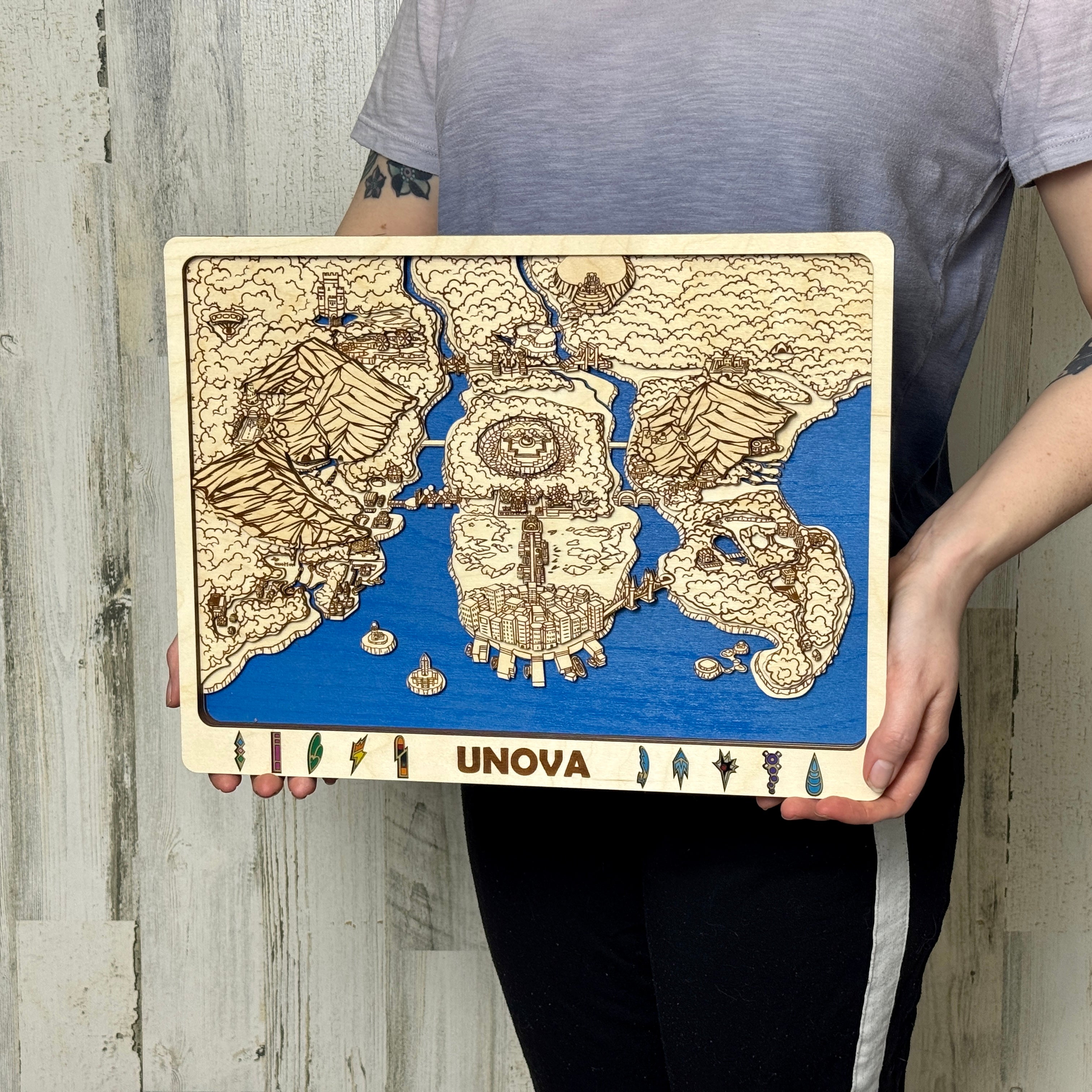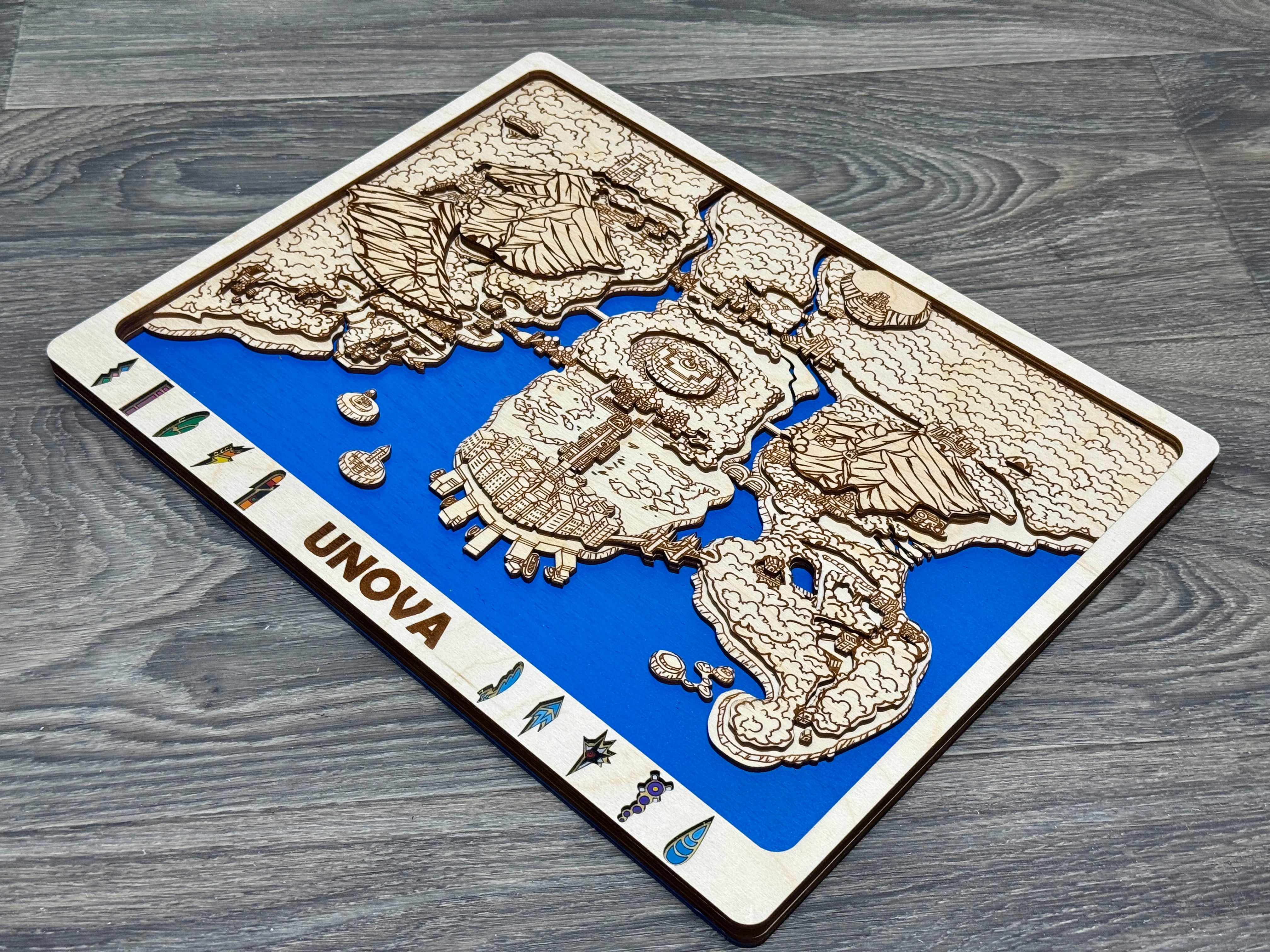 3D Unova Video Game Map Laser Cut Wood MultiLayer Custom Decor Nintendo Pokemon Fan Art
