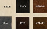 Including: Black, Birch, Walnut, Mahogany, Grey, and Java. Additional colors can be made upon request as well