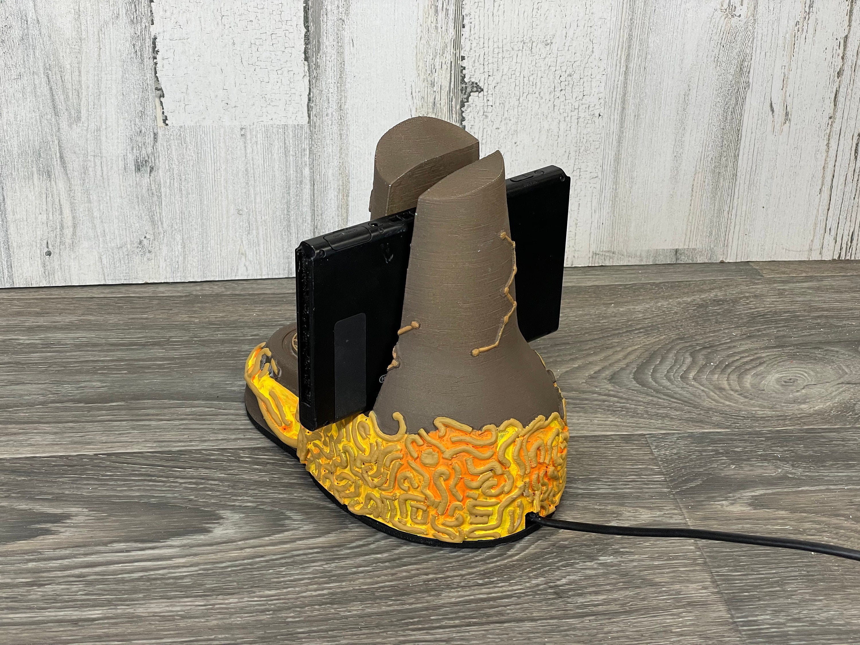 This is an entirely 3d printed version of the shrine entrance from hit adventure game that works as a TV dock for the Switch. This is made from ABS plastic so it is very durable. I can get this shipped out to you super fast for those last minute gifts! Every dock comes with the extender cable necessary to connect the switch to the stock dock and then the tv. The dock does not come with the switch but functions as a holder and dock for it.