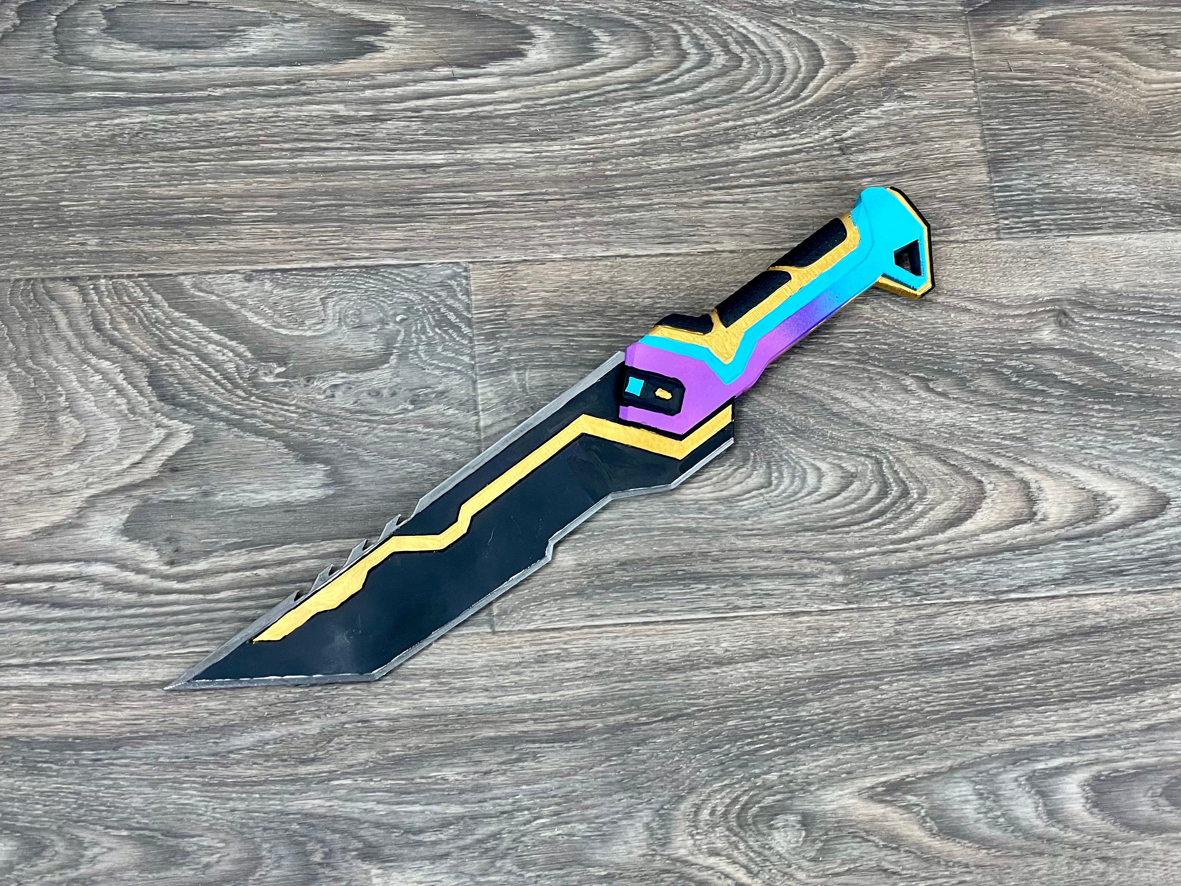 Full scale and hand painted replica of the custom knife skin from the FPS game “Valorant”