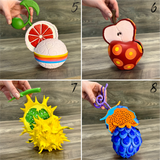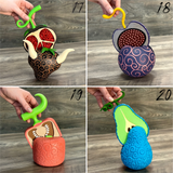 Each fruit varies in scale somewhat due to the wide variety of shapes and designs, but they are all meant to be comfortable to hold in one hand with an approximate diameter of around 4.5 inches. The ship bowl has a length of 18.5 inches, a width of 9 inches, and a height of 7.5 inches. The bowl can hold around 4-6 fruits depending on which ones you try to fit inside.