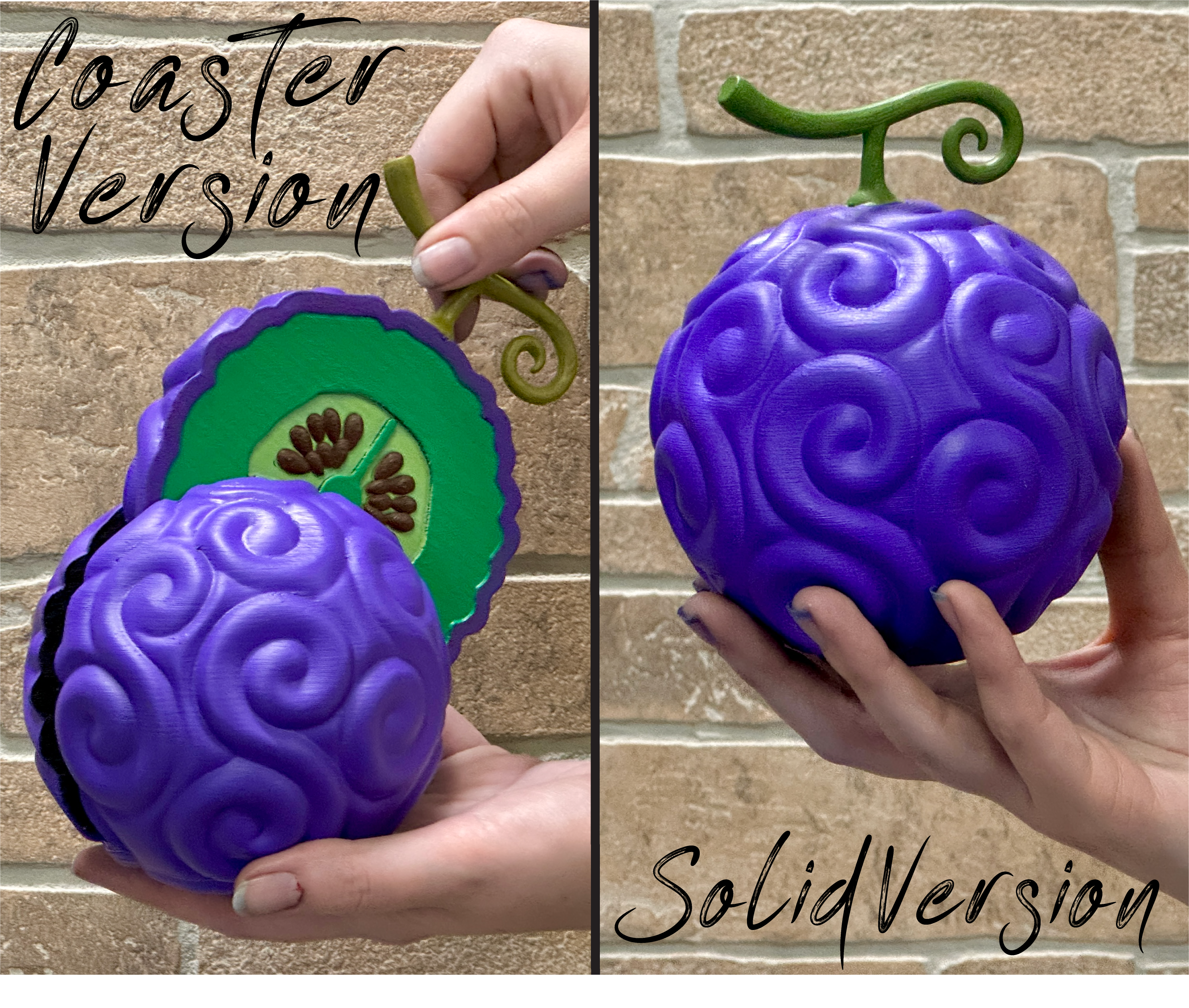 Dive into the world of adventure with these carefully hand-painted 3D printed Devil Fruits, inspired by your favorite anime series. Each fruit is not just a collectible piece of decorative art but also a functional coaster that reveals the inside of each fruit by simply pulling on the stem. When you're done, the slice magnetically snaps back into the fruit for easy storage.