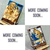 These are hand-assembled, multi-layered 3D wooden trading card replicas designed after the Leader editions found in the popular One Piece anime trading card game. Each card is carefully laser cut, engraved, and hand-painted to highlight the detailed artwork and stylized background.