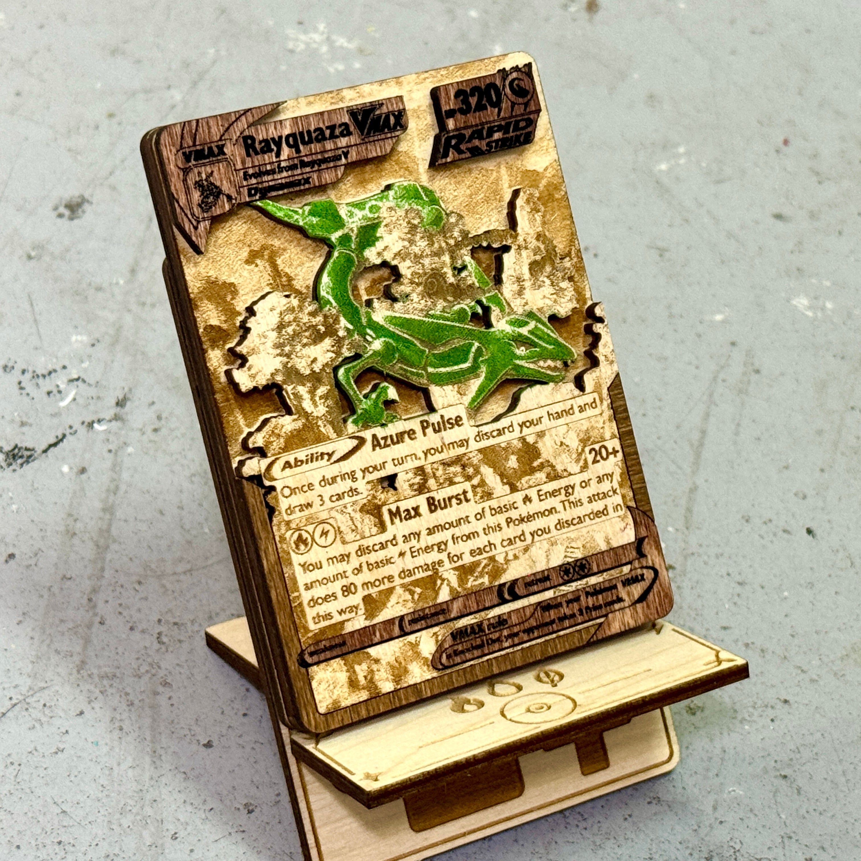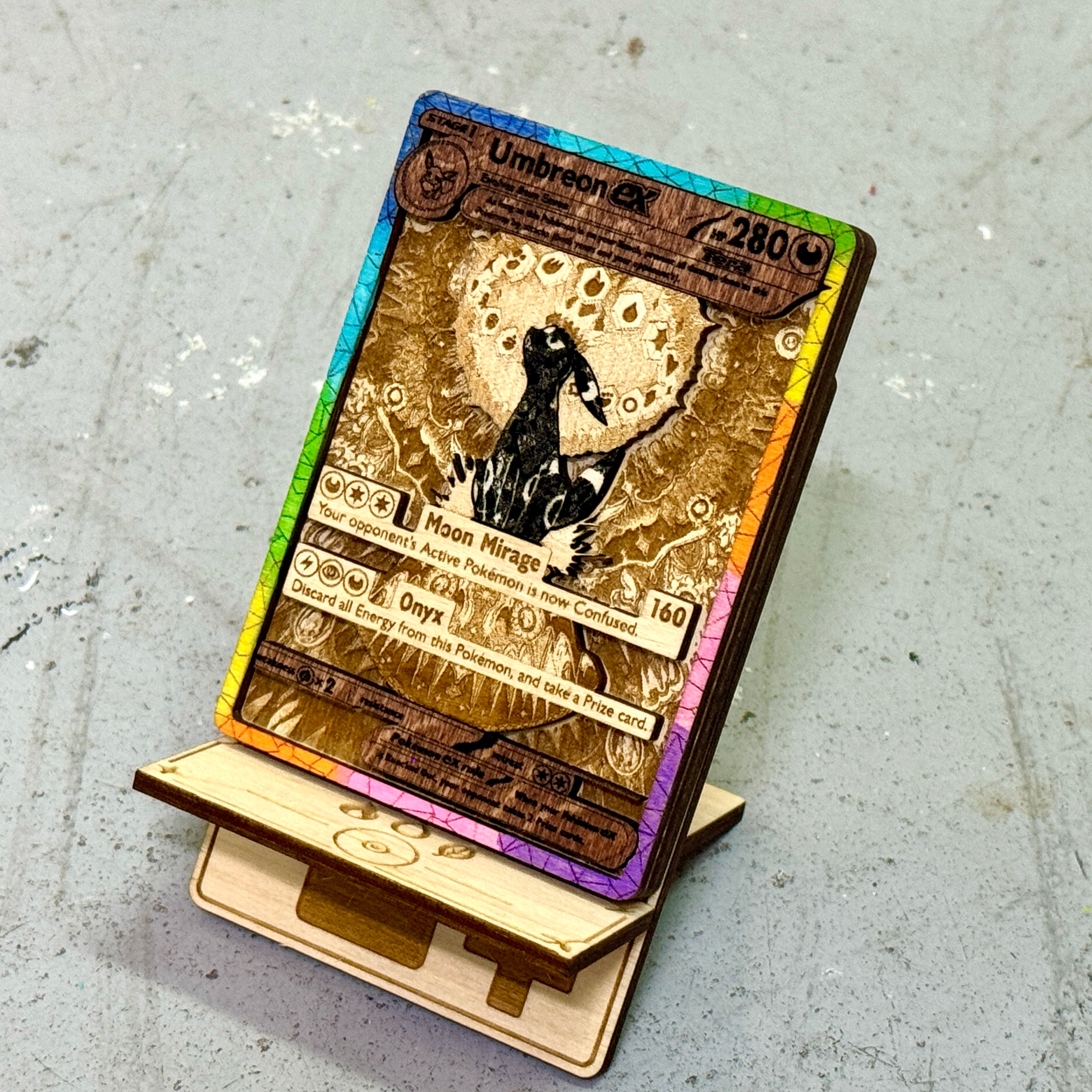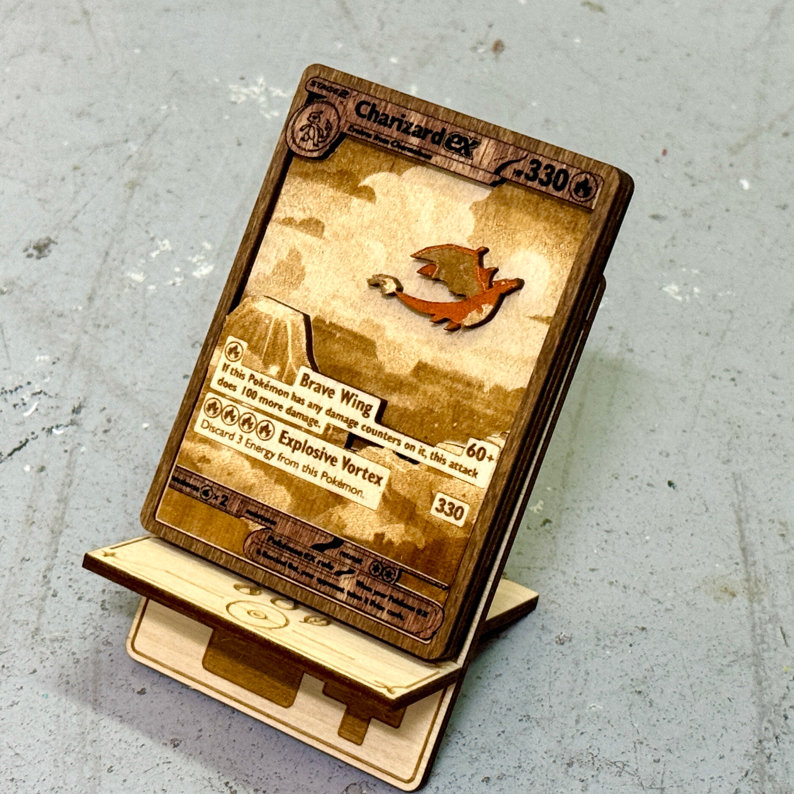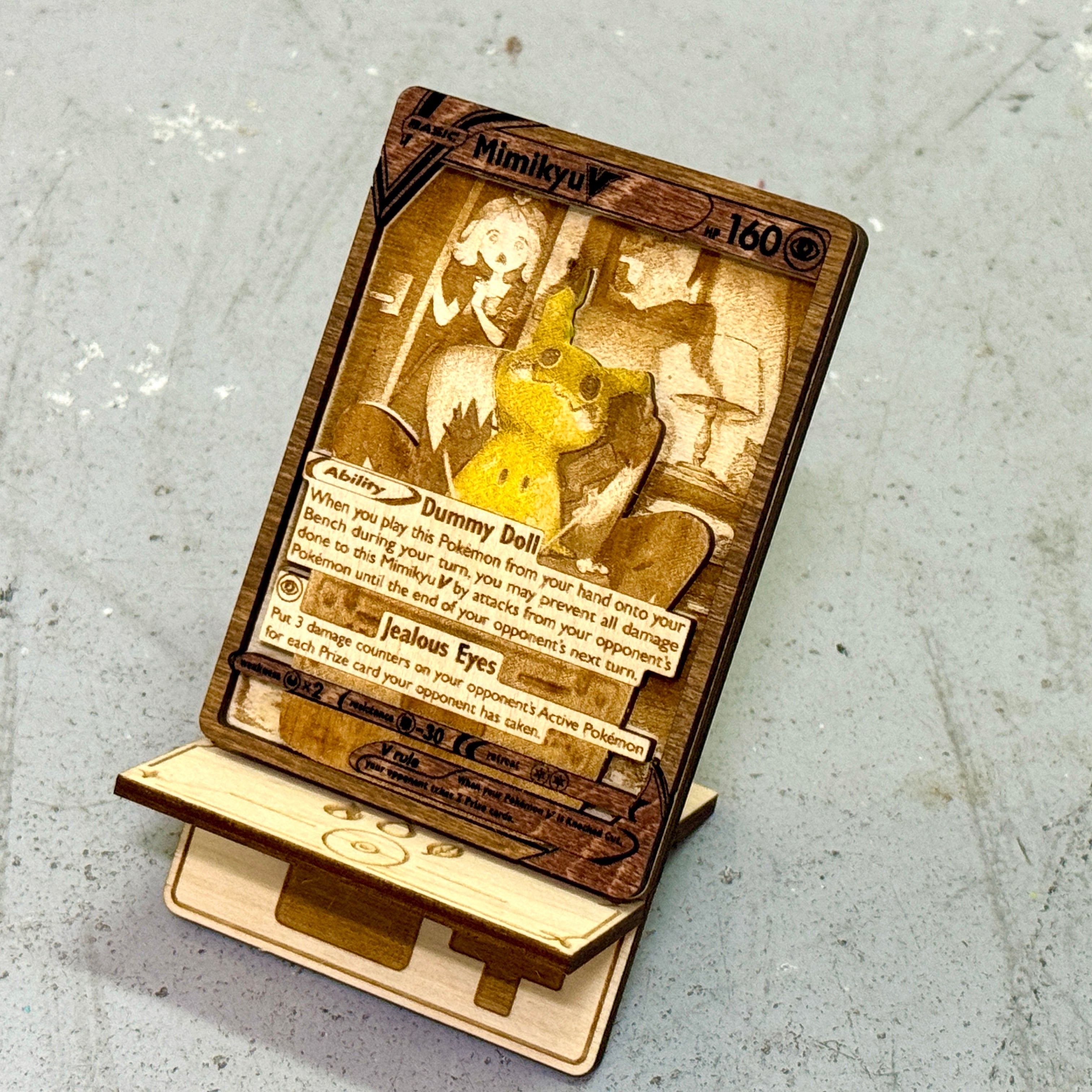 3D Wooden Pokemon Trading Card Replica Laser Cut Multi-Layered Collector Fan Art TCG